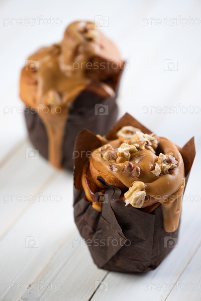 Два карамельных маффина с грецкими орехами