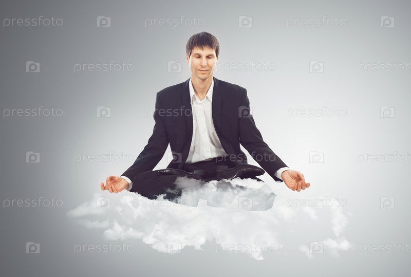 Бизнесмен сидит на облаке