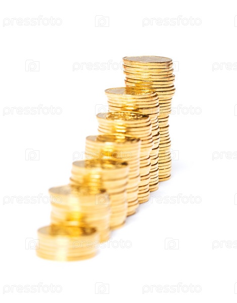 Столбики золотых монет на белом