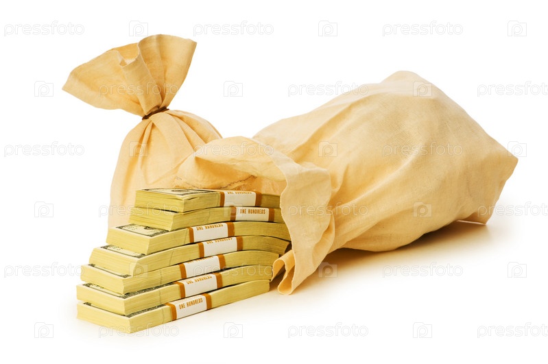 Мешки с деньгами изолированы на белом фоне