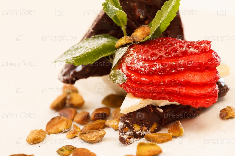 Десерт с шоколадом и клубникой