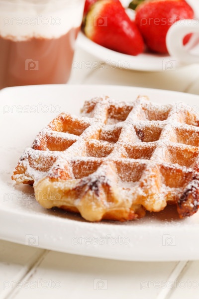 Бельгийские вафли с свежей клубникой