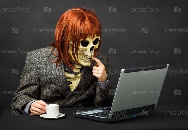 Страшный монстр сидит за компьютером
