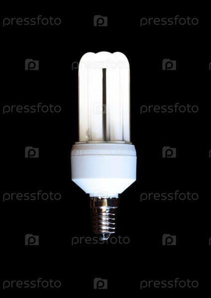 Энергосберегающая компактная люминесцентная лампочка, изолированная на черном