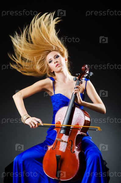 Привлекательная женщина с виолончелью в студии