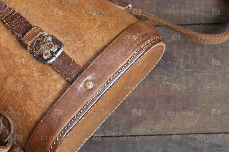 Старый кожаный чехол на деревянной поверхности