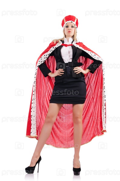 Бизнес-леди в королевском костюме, изолированная на белом фоне