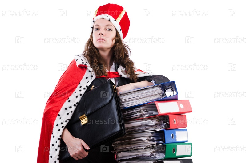 Бизнес-леди в королевском костюме, изолированная на белом фоне