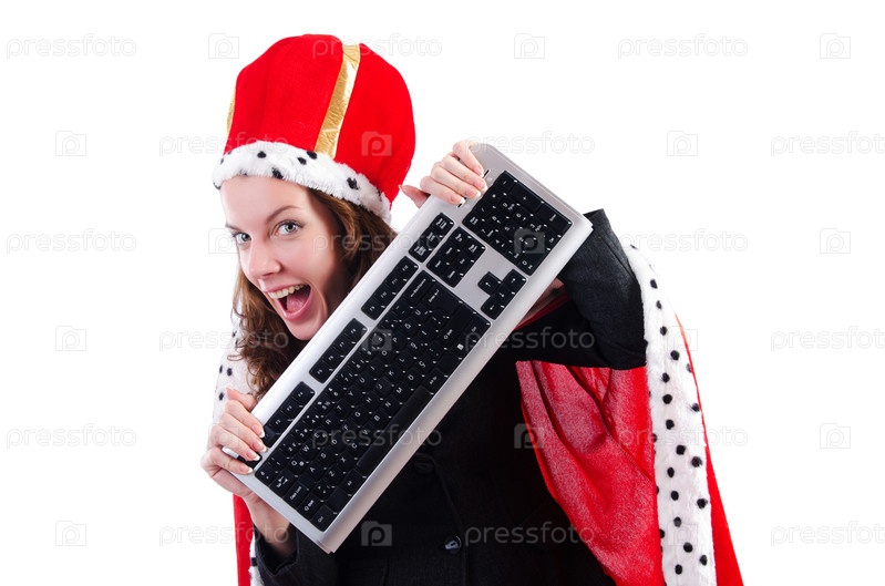 Бизнес-леди в королевском костюме, изолированная на белом фоне