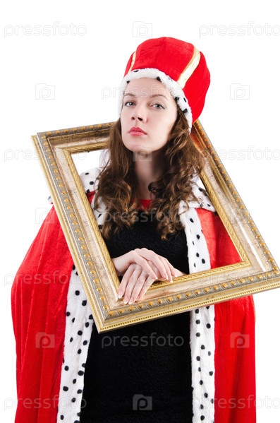 Бизнес-леди в королевском костюме, изолированная на белом фоне