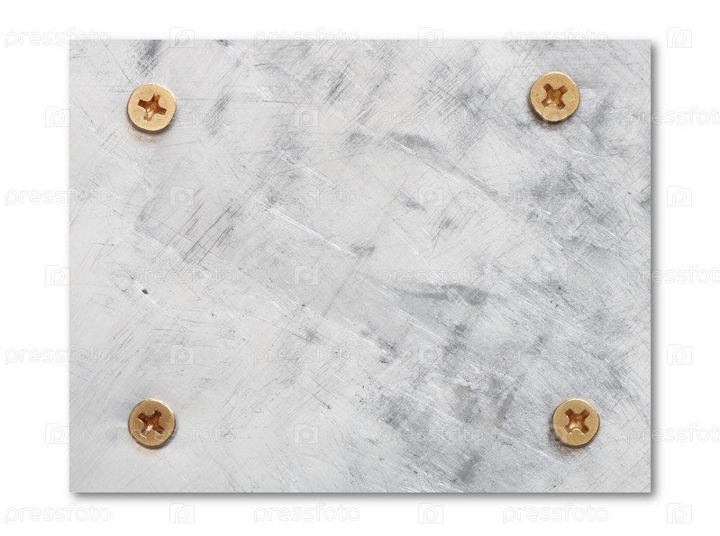 Серая металлическая табличка с винтами, изолированная на белом фоне
