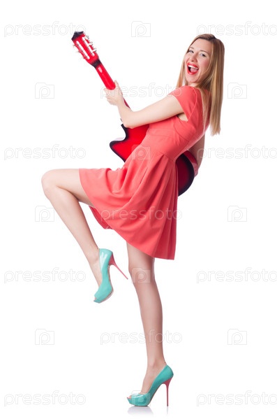 Гитаристка, изолированная на белом фоне