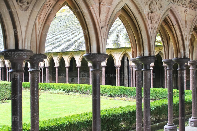 Монастыркий сад в аббатстве Мон Сен-Мишель. Нормандия, Франция