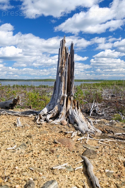 Сухой пень на фоне неба