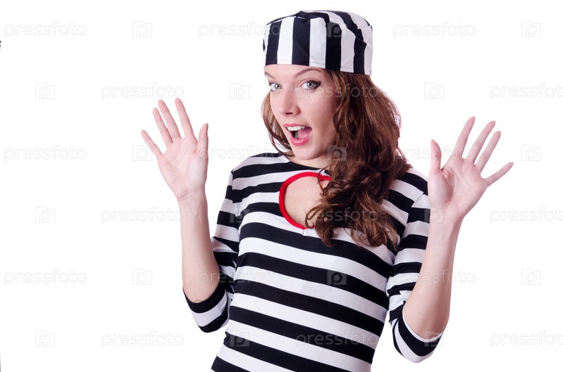 Осужденный преступник в полосатой форме