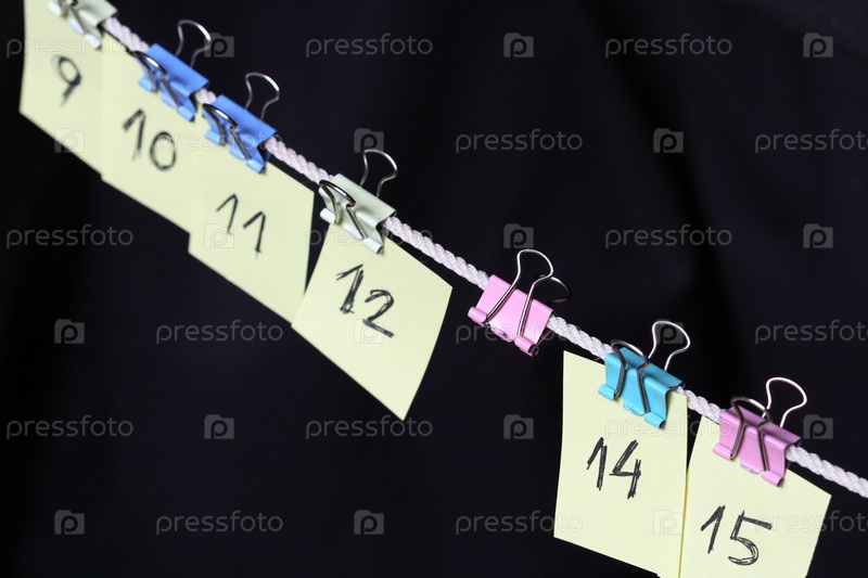 Веревка с пронумерованными бумажными карточками без числа 13 на темном фоне