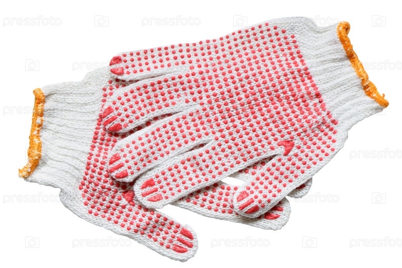 Защитные строительные перчатки на белом фоне