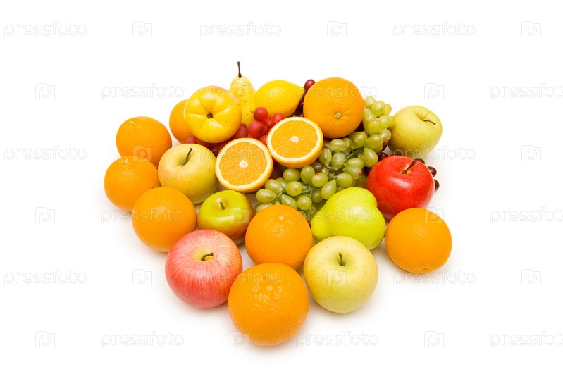 Разнообразные фрукты на белом фоне