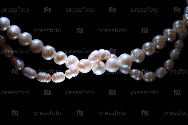 Жемчуг крупным планом на черном фоне
