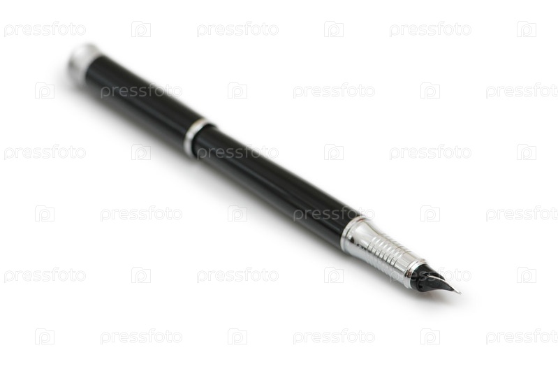 Серебристая перьевая ручка на белом фоне
