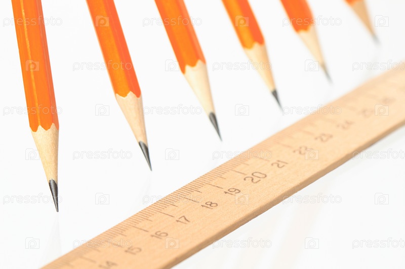 Карандаши и линейка на белом фоне
