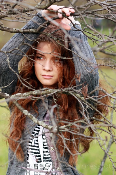 Грустная молодая девушка на фоне осенней природы