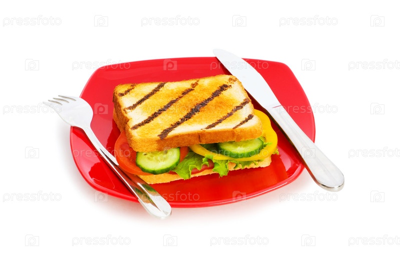 Бутерброд на красной тарелке