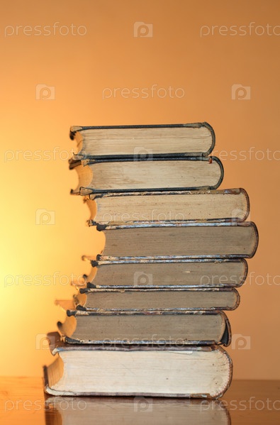Стопка старых книг на желтом фоне