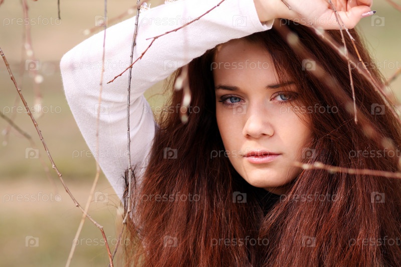 Девушка на фоне веток
