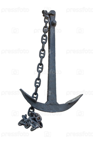 Старый корабельный якорь на белом фоне