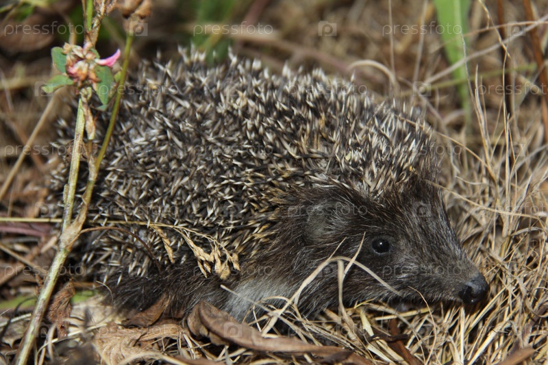 Ежик на сухой траве
