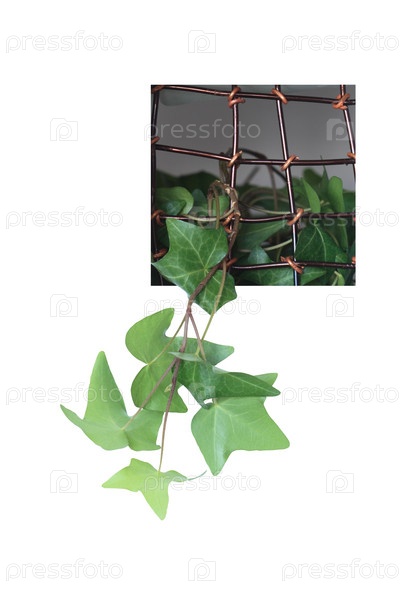 Ветка, спускающаяся из зарешеченного окна, белый фон