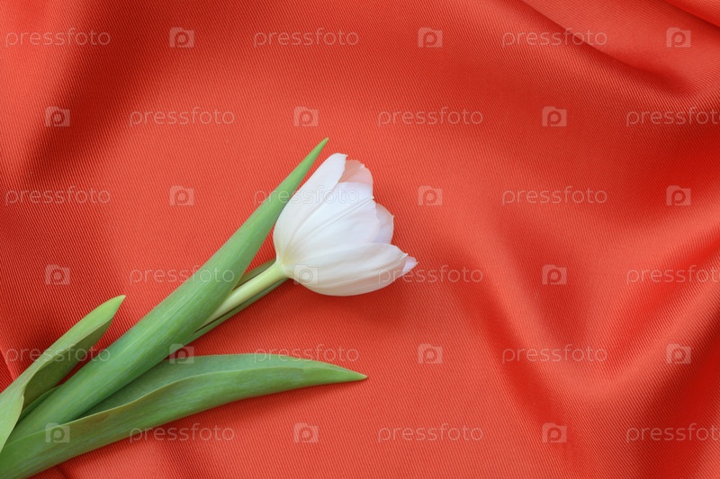 Белый тюльпан на красном шелке
