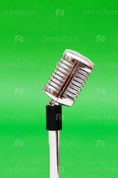 Винтажный микрофон на ярко-зеленом фоне