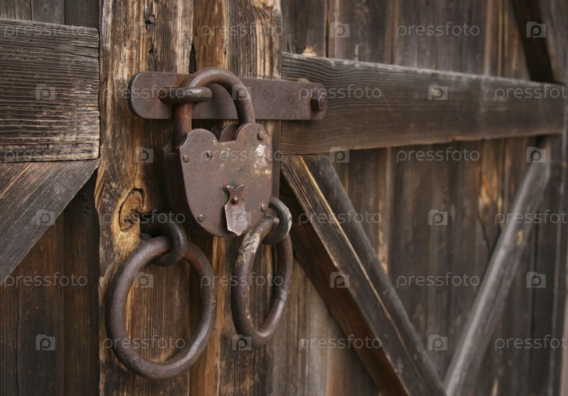 Навесной замок на деревянных воротах