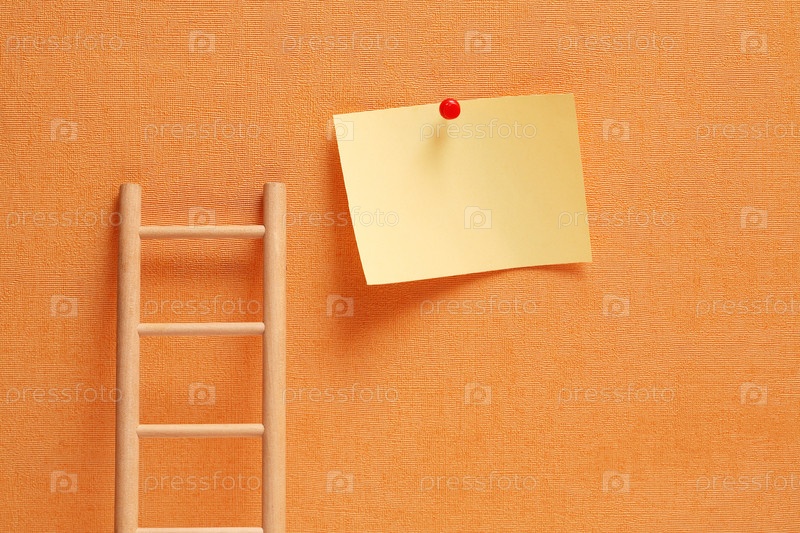 Деревянная лестница у стены и лист бумаги