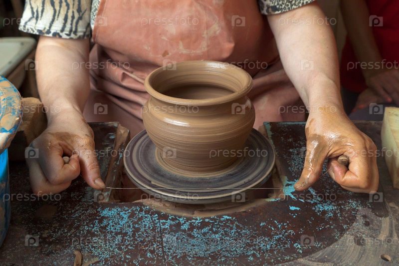Гончарный мастер изготавливает горшок из глины
