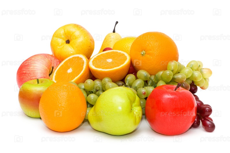 Спелые фрукты на белом фоне