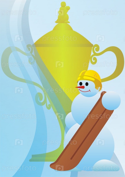 Эмблема. Снеговик со сноубордом на фоне кубка