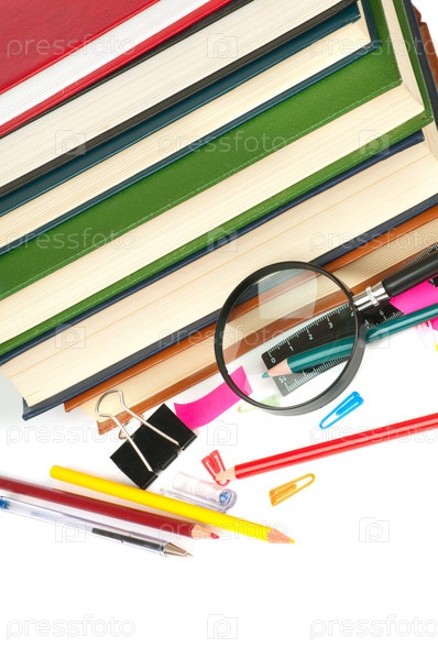 Стопка книг и канцелярские принадлежности