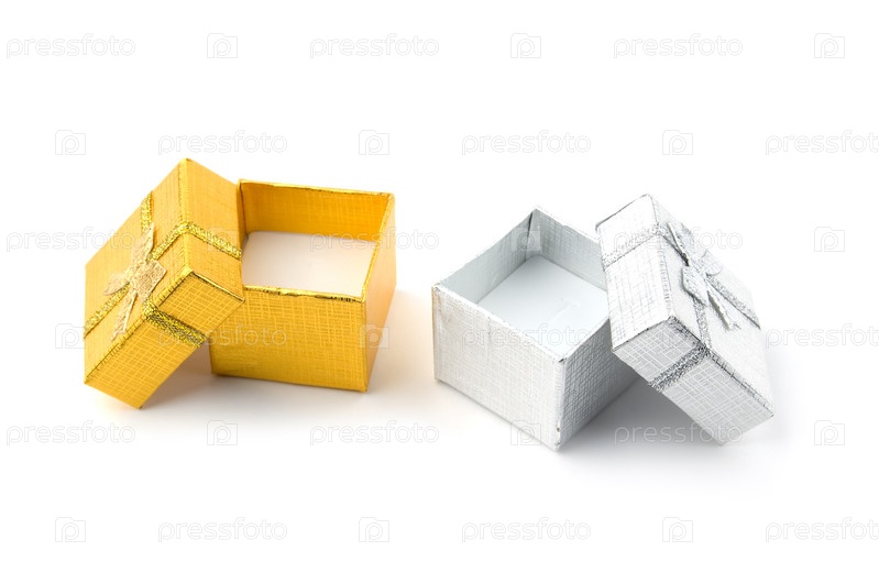 Два открытых подарочных ящика на белом фоне