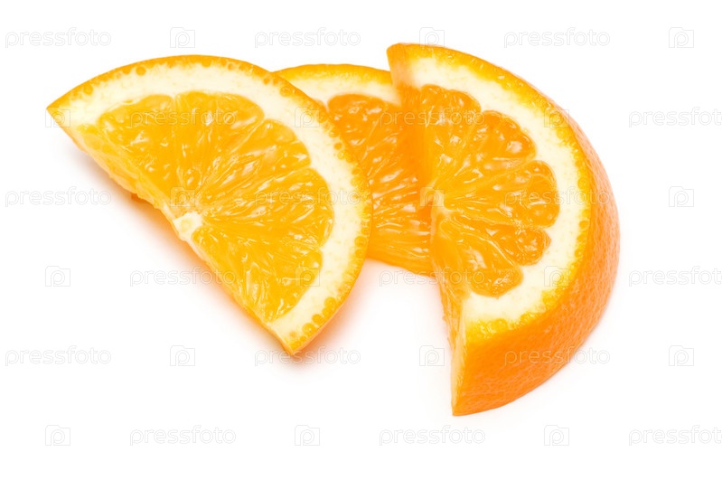 Три ломтика апельсина на белом фоне
