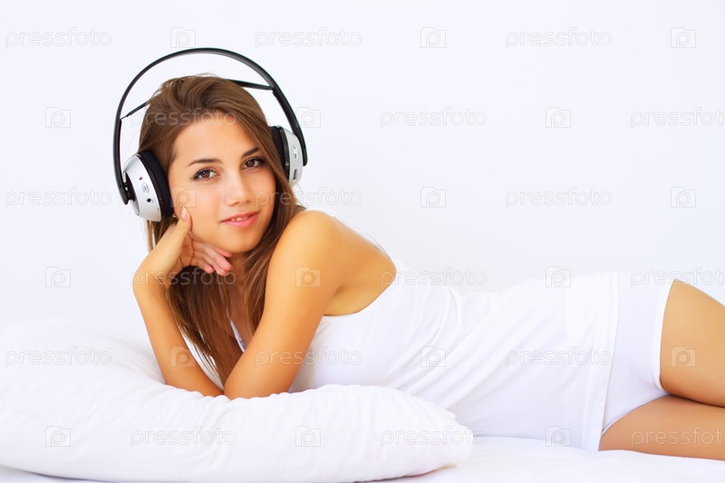 Привлекательная девушка слушает музыку