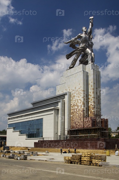 Строительство постамента для Памятника Рабочему и колхознице в Москве ВДНХ
