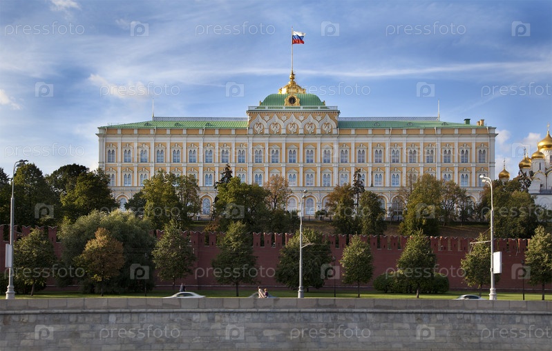 Вид с реки на Большой кремлевский дворец и кремлевскую набережную, Москва