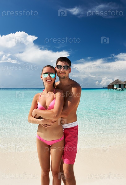 Пара на пляже на Мальдивах