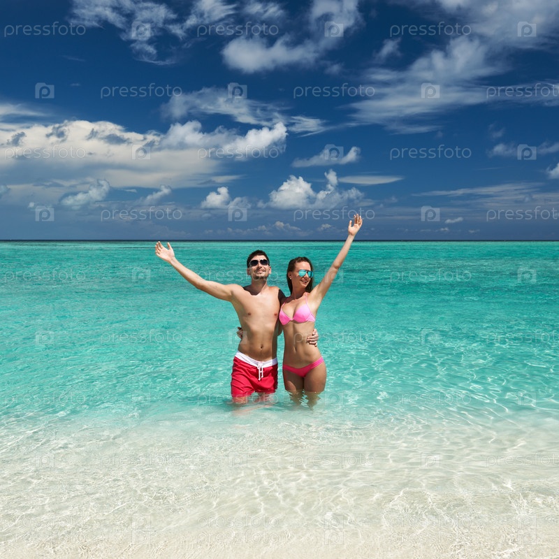 Пара на пляже на Мальдивах