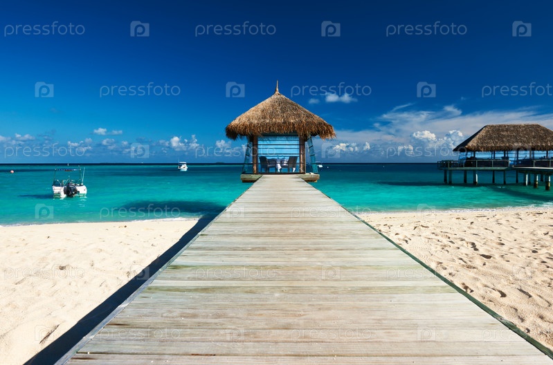 Красивый пляж с пирсом