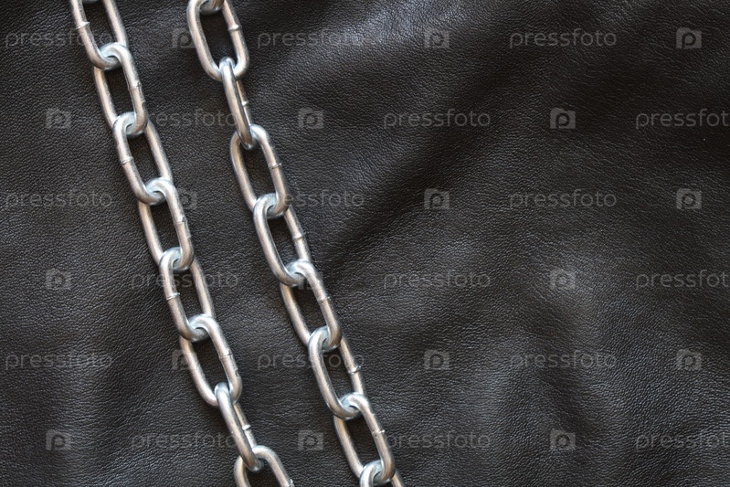 Два металлические цепи на черной коже
