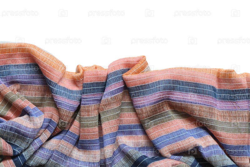 Разноцветная полосатая хлопчатобумажная ткань, изолированная на белом